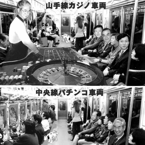 「東京から日本を変える!」と勇ましいスローガンを掲げていた石原慎太郎都知事だが知事2期目、再選を目指して出馬宣言。その公約がなんと「山手線にカジノ車両、中央線にパチンコ車両を走らせます!」。お台場カジノ構想にくらべて低予算で手っ取り早い、という理由だが「終点のない山手線なら思う存分ギャンブルにうつつを抜かすことができる。コンビニに負けず24時間営業も可能」と知事は胸を張る。「東京が巧くいったらカジノ専用新幹線に踏み切りたい」と国交省の扇千景大臣は語るが、それより会期外の国会議事党の有効利用として「国会カジノ」の実現化を審議したほうがいいんじゃないのか、とハマコーさんらが提言している。(「週刊金曜日 2/28号)