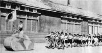 チカラさんばかりでなく家族の皆が僕のことを中隊長というのは、こういう訳だ。僕等の国民学校では、朝礼や観閲式の時に、級長が小隊長、それから交代で中隊長、最上級の六年生の場合には大隊長が出来るということになっていた。僕は初めて中隊長になる時に、敬礼する手の甲をきれいにしようと軽石でこすり過ぎて、結局赤チンだらけにしてしまった。その時ついたのが、赤チン中隊長というアダ名だった。それを言われるたびに当然、僕がカンカンになって怒るので、中隊長の方だけ残したのだ。