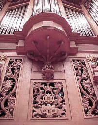 手鍵盤のカプラー(連結機能)は、自分で鍵盤を引っ張るタイプ。 仙台の東一番丁教会と、同じようなスタイル。 |