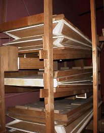 フランスのふいごは、ご覧の通り多折ですが(=安定した風を供給できる)、それに対してドイツは一折のふいご。