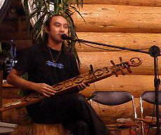 その後アイヌの音楽家・小川 基くんの演奏を聴きました。演奏している楽器は、「トンコリ」です。 柔らかいお琴のような音色がしました♪ |