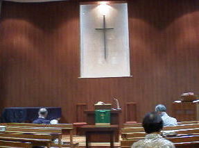 | 礼拝が始まる前の会堂の様子。 すごく広くはないけれど、天井がとても高いので開放感があります。 |