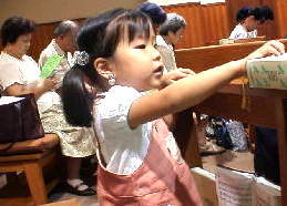 礼拝中に、こっそりおともだちのお子さんのMちゃんを撮影★ 左後ろの方は、まぶちゃんのおばあちゃんにあたる方です。 |