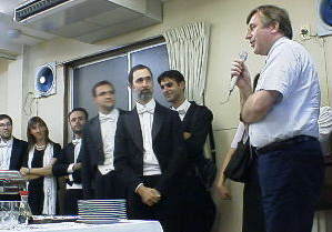 コンサート後の交流会にて。 イタリアンな方々、大集合! 演奏者の言葉で、「私たちはイタリアのあちこちで演奏をしますが、いつもはこれほどの大歓迎はされません」とのこと。面白かった! |