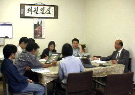校長の李先生。「在日」の2世にあたる方だそうです。はじめ私と渓水寮の古谷くんとで、全くアポなしでドキドキしながら学校を訪れました。 その後2回ほどお会いして、今回のエクスポージャーのための話し合いをしました。話し方がとてもステキな先生です。深くてあったかい方・・♪ |