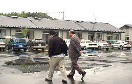 | 李先生と渓水寮シニアの高徳くん。 貫禄十分!? (・・、)ヾ(^^ ) 奥に映っているのは、寮です。 |