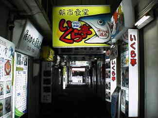 函館駅近くの朝市の様子。 |