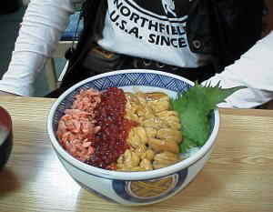 散々迷ったあげくに、お昼はこの「3色丼」に決まり!
