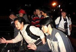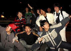 聖研後の交流会(いわゆる飲み会)の移動の途中で。大通り公園のTV塔の前で。