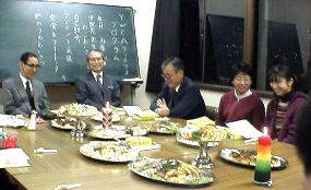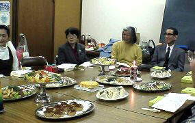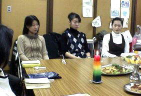 人文館の5階の一部屋で、静かに和やかに持たれました。 左から、佐伯先生、学院長、小幡先生(YWCA顧問)、子るー、なっちゃん。 |