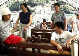 小さい方の和船で、海へ漕ぎ出しました・・くコ:彡。 |