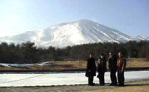 記念にパチリ! 後ろは小さな人口の沼だったけれど、寒くてすっかり凍っていました。スケート場に、なるのかしら?? |