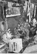 写真上:吉川勇一さん 写真中:1955年、砂川闘争で強制測量に反対する人たち 写真下:吉川祐子さんの葬儀のとき、吉岡忍さんらがつくった冊子