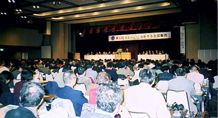 2000年は東北の地では、全国的な集会や大会が3件も集中しました。合成洗剤追放全国集会(9/29〜9/30青森市)、第37回護憲大会(11/1〜11/3福島市)そして食と水を守る全国集会は前日から全国の仲間を歓迎するかのように、宮沢賢治の出身地花巻市は15センチの雪で真っ白に化粧をしていました。本会議場は1,300人の代表でびっしりの満員ということで開会されました。