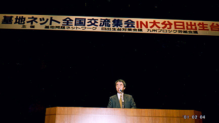 こうした演習は、地域住民の生命を脅かし、環境を破壊し、北東アジアの緊張をますます高めるものとして演習の即時中止を求めて、2月4日別府市のビーコンプラザで全国交流集会を開催しました。米軍基地の撤去や爆音訴訟を闘う仲間が約700人が参加しました。古川代表委員(北海道平和フォーラム)が「全国で分散、実施されている沖縄駐留米海兵隊による演習が規模拡大している。新しい世紀も反戦、平和の運動を発展させよう」とあいさつ。大分県平和運動センター浜田議長も「日出生台演習場の基地化、米海兵隊の演習恒常化が進んでいる。演習中止を実現するまで粘り強く戦い抜こう」と訴えた。