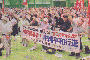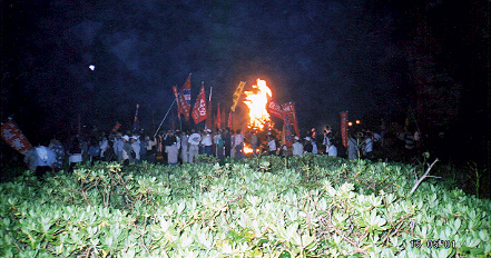 ▲平和運動の原点にもどろうを確認した、辺戸岬集会のかがり火