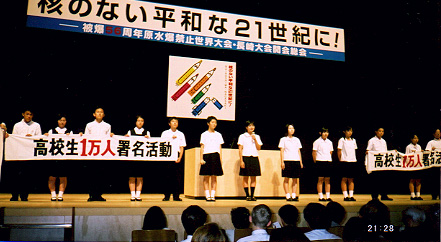 私たちが昨年の世界大会から高く掲げてきた運動課題と原水禁運動が確立してきた「核と人類は共存し得ない」という理念を基に、国際的にも国内的にも運動を強め21世紀の展望を切り開こうではありませんか。