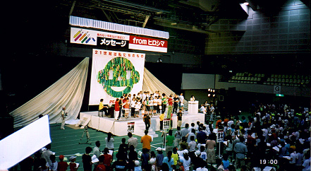 被爆56周年原水爆禁止世界大会は、核のない平和な21世紀に! をメインスローガンに広島大会4,000人、長崎大会3,000人が結集し、特別企画として21世紀の主役となる世界の子どもたちに核兵器の廃絶の願いを託そうと原水禁などの呼びかけで1,500人が広島県立体育館にあつまり、折り鶴7万羽で子どもの顔のモニュメント(縦5メートル、横6メートル)を仕上げたり、21世紀を戦争も核兵器もない世紀にしようとメッセージを国連や首相官邸に電子メールを送信するなど、大人も子ども平和への誓いを新たにするとともに、「核と人類は共存できない」ことを確認し、内外の反核・平和運動、環境運動と連携を深めいっそう運動を発展させることを誓い成功裡のもと終了しました。