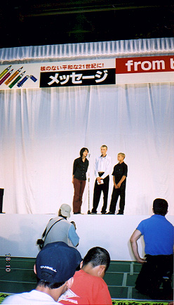 会場では折り鶴7万羽で子どもの顔のモュニメント(縦5メートル、横6メートル)を仕上げ、平和への誓いを新たにする等や、「私たちは21世紀を戦争も核兵器もない時代にします」とのメッセージが発表されステージ上のパソコンから電子メールで国連、日本政府、核保有国の政府に送りました。