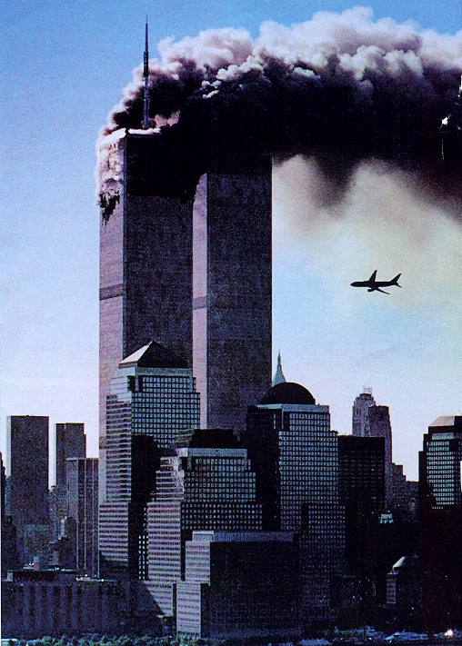 炎上する世界貿易センタービルと突っ込む飛行機(2001.9.11)