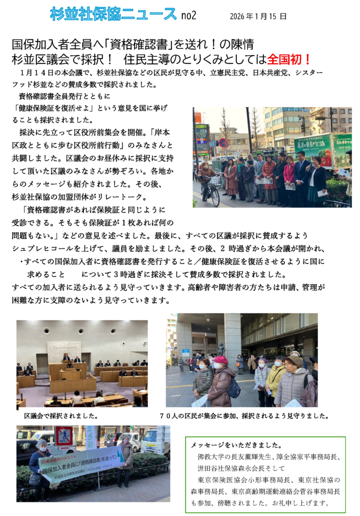 ●杉並区議会で資格確認書一斉交付の陳情採択