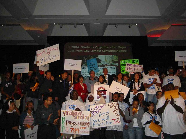 9月30日、ロサンゼルス郡労働総同盟の代議員大会にて、カレッジ学生のための奨学金制度の発足を決定しかし、約1000名近くの代議員の3分2が昼食直後のジョン・スウィニー(AFL-CIO会長)のあいさつを聞くと帰ってしまいました。4時からは、代議員が全員でストライキ突入目前のホテル労働者の支援デモに参加するはずだったのにと、私は閑散とした会場を見て驚くばかりでした。ケント・ウォンに聞くと、「多くの組合は依然としてビジネスユニオニズムなんだ。自分の組合のことは考えているけれど、ホテル労働者の闘いには興味がないんだ」と言っていました。