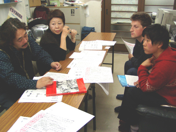 On 17 December we visited the Kanagawa City Union (KCU), a suburb of Tokyo.I had never been to Kanagawa before.Prior the visit, Mr. Takahei had explained that Kangawa was a workerfs town.The union office atmosphere was so heated that not even lighting would have distracted the intense discussion that was taking place.It was a meeting on report backs from various unionists.Their passion and activity immediately came through to me.The thing that surprised me upon hearing their self-introductions was their different nationalities: Korean, Japanese-Brazilians, Japanese-Peruvians and of course, Japanese.I found out for the first time the extent that the Japanese government was using migrant labour to solve their economic crises.