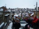 | その日はフランス全土が大雪という悪天候で高速道路はふさがれ多くの県では雪のためバスがストップしたにもかかわらず、8千人がゲレの小さな通りをデモ行進した。吹雪の中、約2千人ごとの大きな3つの隊列で、公共サービスを守るグループや色とりどりの多数の旗(とりわけSUDが多かった)を掲げた連帯労組、そしてCGTがデモ行進した。それに比べればずっと少ないが、各政党の姿もあった。演説では連帯労組議長のアニク・クペ(彼女は元SUD−PTTの議長)が大きな拍手喝さいを受け、そして新自由主義政策に報いている社会党の指導者フランソワ・オーランドにはたくさんの雪玉が投げつけられた。 |