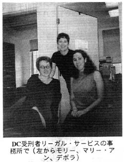 CUREの会議終了後は、ワシントンDCに移動した。DCには各種NGOの事務所が集中しているため、アメリカの監獄改革や死刑廃止団体の諸活動に学んで、我がCPRにぜひとも生かそうという意図であった。死刑廃止情報センター、全米死刑廃止連合(NCADP)などいくつかの事務所を訪問でき、いずれも有意義だったのだが、なんといってもCUREの会議において受刑者の権利救済の分科会でパネリストをしていたマリー・アン・セネット弁護士が事務局長を務める「DC受刑者リーガルサービス」が、刺激的だった。この法人は、名称から公設なのかと思いきや、まったく違っていて、1989年に、DCの大きな法律事務所が、刑務所からの相談案件などがあまりに多いため困り果て、出資して設立したのだという。日本でいえば、日弁連会長を輩出するような巨大ビジネスロイヤー集団が、監獄訴訟専門事務所の設立にお金を出してくれたようなもの。以後は、出資母体の事務所とは特につながりを持たず、主に各種財団からの援助で成り立っている。駅前の通りに面したかなり立派な1階にあるオフィスは、意外にこじんまりとしていたが、現在専従スタッフ4人を抱え、全員女性。マリー・アンはソーシャルワーカーから弁護士に転身し、バッファローにある、やはり受刑者の権利救済のための事務所(ただし公設)に5年間勤務した後にDCにやってきて、3年になる。もうひとりの弁護士スタッフの若いデボラは着任して1年半。以前はドメスティックバイオレンス救済の組織で2年間働いていたという。2人ともアメリカ自由人権協会の会員で、マリー・アンはDC支部の理事もしている。そして25歳のパラリーガル(法律家補助)の女性と、その他事務全般を担当する職員がいる。このオフィスには、年間を通じて2000件もの権利救済や処遇上の不満の訴えがくる。もっとも多いのは受刑者の家族からの電話だが、受刑者からの直接の