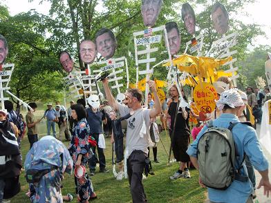 東京でも活躍した「貧困と環境破壊のG8」横断幕 さあ、ピースウォークだ、平和を訴えるぞ。