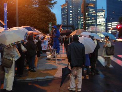 4月16日(金)18時半からの連続抗議行動の第6波。金曜はいつも寒い、おまけに雨、それでも約50名が参加した。