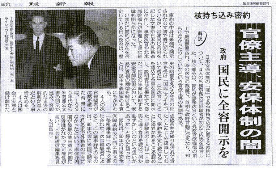 核持ち込み密約 官僚主導、安保体制の闇 政府 国民に全容開示を