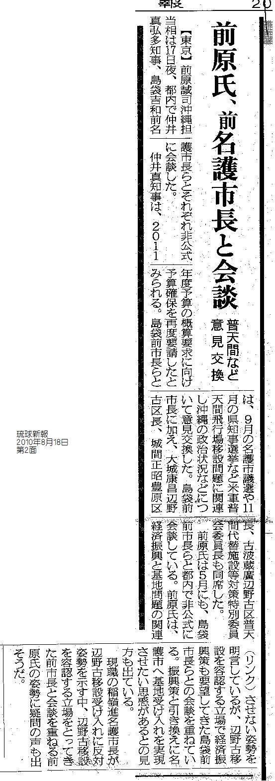 2010年8月18日付琉球新報に興味深い記事が満載。