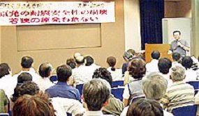 | 9月9日、「原発震災」に警鐘を発しておられる石橋克彦神戸大教授(地震学)から、「原発の耐震安全性の崩壊−若狭の原発も危ない」をテーマに講演していただいた。参加者は100名を超え、富山・愛知・岐阜・福井などからの参加もあり、盛況であった。講演の後の質問・意見も次々と出され、終了間際まで途切れることなく続いた。当日の集会の様子について講演内容を主として報告する。 石橋先生の講演は、「地震・地震動・震災を区別して理解しよう」と地震現象についての基礎から始まり、地震の分類・法則性、そして原発の耐震設計審査の旧指針と新指針の批判と続いた。さらに、兵庫南部地震をはじめ、十数年前から頻発しているサハリンや北海道から福岡で発生している地震が、巨大地震と想定されている東海地震、東南海地震、南海地震の三大地震の前ぶれであり、日本列島の日本海側を西から東に圧迫している「アムールプレート東縁変動帯」(作業仮説)と名付けられたプレートの動きに関係していると、現在の「日本の地震情勢」について話された。若狭湾もこのプレートの影響下にあり、しかも地震の空白域であり、若狭に集中立地している原発が危険であると指摘された。 適地か否かの立地審査を行わないことは根本的な問題 耐震安全審査指針−旧指針と新指針−では耐震安全性は確保できない 現在立地している全ての原発の耐震安全性評価に用いられた旧・耐震設計審査指針については、現在の地震学の2本柱の成立−震源断層面のズレが発生源という地震の見方と地震がなぜ起こるかを明らかにしたプレートテクトニクス−以前のものであり、古めかしく、過小評価が多い。「原発の耐震安全性」は今回の中越沖地震以前から崩壊していた。 また、新指針についても問題だらけだが、特に「震源を特定しない地震動の評価」が問題である。この問題点は、観測された震源近傍の地震計の記録のうち、「『震源と活断層を関連付けることが困難な』地震」の記録を基にして基準地震動の応答スペクトルを設定することで、多くの大地震をへ理屈をつけて「関連付けが容易」として除外している。事実、模範解答として提示されている日本電気協会の「震源を特定しない地震動」では、マグニチュード6.6程度、最大加速度450ガルほどの基準地震動の応答スペクトルにすぎない。安心のために、また「保守的」であるためには、震源近くの観測記録の全てを使用して応答スペクトルを作成するべきである(全て使用した場合の最大加速度は、約1000ガル)。 さらに、原発の立地にあたって「立地審査指針」に基づく審査を行っていないことこそ根本的な問題であり、「立地の条件がいくら悪くても、耐震設計でカバーできる」というおごりたかぶった、地震を侮った姿勢こそ最悪の問題と強く批判された。 なお新指針を批判された際に、「耐震指針検討分科会」の最終回に、委員の辞任を決めて臨んだが、退席時には、清水の舞台から飛び降りる気持ちであったことと、あの時辞めた自分に感謝していると語られたときには会場から大きな拍手が起こった。 若狭の原発の危険性 活動期にある地震の発生地域内、かつ[空白域]/越前海岸の隆起は地震活動によるもの 若狭にある原発の地震の危険性に関して、兵庫県南部地震を契機として地震の活動期に入っている「日本の地震情勢」について話された。それは、極東の小さなプレート(マイクロプレート=アムールプレート変動帯と名づけておられる)が、西から東へ動いている動きが重要である。サハリンから九州にかけての広範囲で活発化している地震は、この動きの影響であり、西からの圧迫を受けて次々に起こっている。それが、やがては南海地震、東南海地震、南海地震につながる。三大地震の歴史上でも同じような地震活動があった。他方、GPS(全地球測位システム)による測量も西から東へのひずみ(年2センチ)を示している(注:新潟−神戸ひずみ集中帯や日本海東縁ひずみ集中帯を含み、もっと広範囲でダイナミックなマイクロプレートの動きについて以前から主張されている。) この動きの影響下に若狭の原発群は立地し、その上、地震の「空白域」であることから、地震が起こる可能性が高い。加えて、日本海沿いの陸地で、12〜13万年前は海岸線であったところが、現在は100メートルも隆起している地点がいくつかあり、その一つが越前海岸である。このことは、過去に地震が繰り返し起こったことを示しているが、歴史文献に残っていないことから、地震の可能性が高い「空白域」である。 さらに、若狭湾沖にある沖トラフの両脇には海底の活断層があり、M7.6クラスの地震での津波の危険性も考慮しなければならない。こうした津波については「津波伝説」が若狭湾の一体に残っており、過去には実際に津波被害があった。 講演の最後は、インド洋での津波やJR宝塚線脱線事故などの教訓から「起こる可能性のあることはいずれ起こる」と警鐘を発し、柏崎
