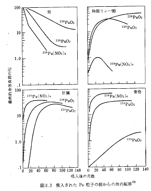2003.7.23 小山英之(美浜の会) 長尾氏が福島第一原発2号機でプルトニウムを吸入した可能性は否定できない。それが骨に沈着し、長年にわたってα線を照射したことによる内部被ばくが、多発性骨髄腫の重要な原因の一つになった可能性がある。労災認定にあたっては、この可能性を考慮することが不可欠である。1. 長尾氏の(外部)被ばく線量と福島第一原発 ◇ 長尾氏の集積線量は、フィルムバッジで70mSv、その約85%を福島第一2・3号機で、さらに、70mSvの約75%は福島第一2号機で。これはガンマ線による外部被ばく。 ◇ 一般に、福島第一原発での被ばく線量は右図のように1978年ごろから急速に増え、全国被ばく線量の約6割を占める。◇ 長尾氏が福島第一で働いたのは、1977年4月〜1979年12月及び1981年9月〜1982年1月で、ちょうどグラフのピークの時期に該当している。 ◇ 福島第一1号機では、第6回定検中の1978年12月に、燃料集合体6体で燃料棒破損が、同2号機では、1977年3月にやはり6体で燃料棒破損が見つかっている。当時の燃料に欠陥があったことは東電も認めている。しかし、これら燃料破損の資料、とりわけひび割れの写真を公表することを、東電はなぜかひどく渋っている。 2.福島第一1号機のアルファ汚染 ◇ 長尾氏が働いた2号機のαデータが未公表のため、先に1号機の状況を見る。 ◇ 1号機の汚染状況は昨年9月の内部告発によって初めてデータ的に明るみにでた。α汚染は20年間も隠されてきて、労働者は何も知らずに被ばく労働を強いられてきた。 東電1981年12月作成の資料「スタックからの放出放射能の低減に関する検討結果について(松葉作戦)」によれば、1号機は5階から地階までα、β・γ核種でひどい汚染状態にあった。1978年の第6回定検時には汚染はさらにひどい状態にあったことは確実。 ◇ 特に「松葉作戦」では、5階の汚染はもちろんひどいが、むしろ地階(トーラス室)三角コーナーの汚染が最もひどい。1階も高い汚染状況にあることが認められている。格納容器内と大物搬入口前を人や物が行き来するので、この汚染は必然なのだ。しかし当時、このような場所は汚染とはほど遠いと捉えられていた(長尾氏の証言によっても)。まして、「α核種のことなど聞いたことがなかった、昨年の新聞で初めて知った」と長尾氏は語る。 ◇ 1階はまた、「バリア」という赤いビニールの敷かれた場所で、労働者が防護服・マスク・靴などを脱ぎ去るところ。 ◇ 東電は松葉作戦で排気筒からα核種を放出しないとの目標を立てた(8頁)が、無理なためか、検出濃度限界値の方を上げてα核種が見えないようにしてしまった(グラフ(A))。それだけα核種が冷却水や原子炉建屋内に存在し続けたということ。 3.福島第一2号機のα汚染 ◇ 2号機にもα核種が存在した。第1の根拠は、松葉作戦2頁の次の記述。「2号機は1号機に比べ炉水中のα濃度が約1桁低い」。 ◇ もう一つは、2号機タービン建屋換気系排気筒から1981年3月末と6月初めにαが放出されていること(グラフ(B))。その他の時期には検出限界値を上げて見えなくしている。 ◇ 排気筒でこれだけのα濃度⇒タービン建屋がα核種で相当に汚染⇒冷却水がα汚染⇒原子炉建屋もα汚染:ということを意味する。 ◇ 恐らく1977年3月に明らかになった6体の燃料破損が原因。プルトニウムが主な核種。 Pu238対(Pu239+240)は約7対3。 4.長尾氏がα核種を吸入した可能性 ◇ 長尾氏は、格納容器内で仕事をするときは全面マスクを着けていたと言っている。しかし、格納容器外での仕事の場合は、(はっきり意識していないが)たぶんマスクは着けていなかったと証言している。特に1階での仕事のときはしていなかった。1階が汚染されているなどという意識はなく、そこは「空気のきれいなところ」だと思っていた。まして、「アルファ」などという名前は聞いたこともないという。地階の場合も同様で、彼は現場監督の立場で、バルブ切断作業が終わってから作業状況を確認する役割だった。 ◇ 「放射線作業許可書」のことは、それがあることは知っていて、本来は作業現場に張り付けておくべきものだと思っていたが、一度も見たことがないという。 ◇ 1階と地階の格納容器外での作業、及び彼がときどき用具をとりに通った通称「松の廊下」でもα核種(Pu)(やSr90)を吸入した可能性が高い。 ◇ ときどき行われているホールボディカウンターでα核種は見えないし、バイオアッセイはせいぜい一度しかやられていない(WBCとBioの両方に丸印が一度だけある)。 5.必要なデータが公開されるべきである ◇ 2号機にα核種が存在したことは確認。正確な評価のためには、当時の2号機のα、β及びγ核種に関する、各階の表面密度と空気中濃度データが公開されるべきである。このデータ公開なしに、α内部被ばくの可能性を一概に否定するのは誤りである。 ◇ 汚染の原因となった燃料破損に関するくわしい状況がひび割れの写真を伴って公開されるべきであり、冷却水や床面付着放射能中の核種分析結果も公開される必
