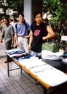 金を払えば専門技術者を雇うことができるだろう。しかし、野宿者にも野宿者運動にも金はない。野宿者は金の変わりに何を 「対価」 とできるのだろうか。日々の活動それ自体がすでにそうであるように、資金的にも精神的にも野宿者運動は野宿者だけでは、非野宿者との関わり抜きでは、発展できない。私たちはどのようにして非野宿者との結びつきを、何を接着剤として非野宿者との結び目を作り上げることができるのだろうか。その意味で、Tシャツ製作・販売自体がそうだったが、今回は非野宿者との関わり方そのものにも試験的な要素が多分に含まれていたと言っていい。