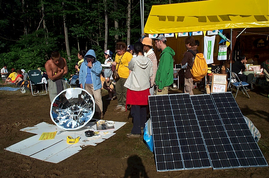 ホーム > 活動 > 自然エネルギー環境教育の実施 > 苗場「FUJI ROCK FESTIVAL2003」のNGO Village参加の写真