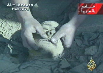 私たちは、中東のCNNと言われるアルジャズィーラのサイトから、これらの写真を転写しました。アルジャズィーラのホームページは中東に住む人のための報道機関です。当然アラビア文字で表示されていて、英語や、ましてや日本語で表記されているわけではありません。日本に住む者がここにいるままで、アフガニスタンに思いを馳せるための具体的な手段が皆無であるという実情に、私たちは怒りを憶えずにはおれません。