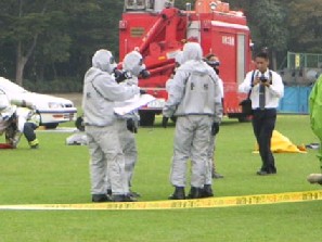 防災訓練のハウツーが着実に積み重ねられているということになるのであるが、中でも「NBC」対策訓練が一つの重要な課題となっている。すなわち、テロ対策が想定されているのだ。「国民保護法」が成立してからは、この防災訓練はますます、有事訓練を先取りしたものとなっていくだろう。