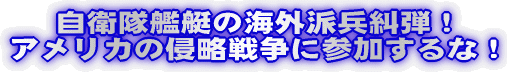 私たちは、日本政府が9日早朝に自衛隊の軍艦3隻をインド洋に派遣した事を糾弾します。軍艦派兵の目的はアメリカの対アフガン戦争に参加し、軍事支援(後方支援)をすることです。アフガン民衆に対する人殺しの戦争に参加することです。このような戦争参加のための海外派兵は戦争放棄、武力不行使を定めた日本国憲法を全面的に踏みにじる暴挙です。絶対に許せません。