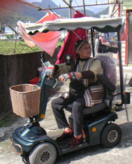 アパイ阿媽は奇麗に片付いた家を案内してくれ、私たちにタロコの布がデザインされたバッグをお土産にくださいました。そして自分が大切に育てているニワトリを見て欲しいと、屋根つきの電動四輪車にさっそうとまたがって案内してくれました。フェンスに囲まれた、アパイ阿媽のとっておきの場所で、ニワトリたちは元気に飛び廻っていました。鳥インフルエンザの影響で、ニワトリたちは処分しなくてはいけないとのこと、アパイ阿媽は残念そうに語っていました。