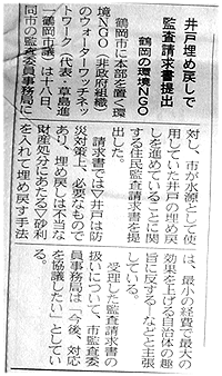 10月18日、市宛に監査請求を行う。しかし、22日、羽黒町の3本の井戸が完全に埋め戻され、 |