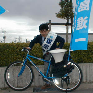 今回は、4月22日、アースデイを含む、アースウイークですので、カヌー、自転車を使って、選挙戦、手作りでがんばりました。日本を、鶴岡を、かえたい。新しい風を吹かせたい。草島です。どうぞ、よろしくお願いします。