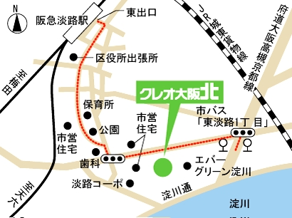 阪急京都線・千里線(地下鉄堺筋線乗り入れ) 「淡路」駅(東出口)下車、南東へ徒歩約10分
