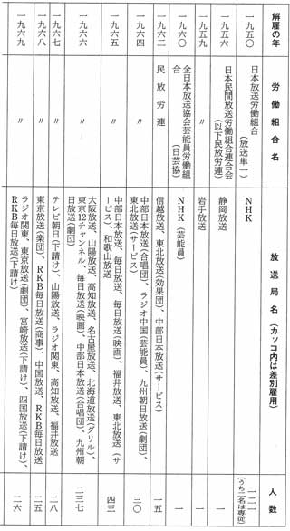 電波メディアの国家支配は許されるか?…… マルチメディア時代のメディア開放宣言 電網木村書店 Web無料公開 2005.4.15 [資料5]戦後日本の放送局における解雇事件 図版のみ掲載 (11)参考資料リスト へ