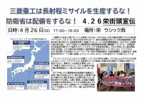 ■不戦へのネットワークでは2025年6月8日、外国領土への攻撃可能な長射程ミサイルの製造工場である三菱小牧北工場前でのアピール活動と小牧市内での街頭宣伝行動を行いました。 ■不戦へのネットワークでは2025年5月16日、航空自衛隊機が愛知県犬山市の入鹿池に墜落した事故(2025年5月14日)について原因究明や再発防止等の内容で小牧基地への申し入れを行いました。 ■不戦へのネットワークでは2025年4月10日に2025年度総会を行い、2024年度活動報告、2025年度活動方針を採択しました。また、飯島滋明さん(名古屋学院大学教授)の記念講演(演題:「改憲が進む南西諸島・西日本の現状」)を行いました。 ■不戦へのネットワークでは2025年4月10日、東海防衛支局にて「長射程ミサイルの九州配備に抗議し、撤回を求めるとともに、長射程ミサイルの製造配備をやめるよう求める要請書」を防衛大臣、防衛装備庁長官宛に提出しました。 ■不戦へのネットワークでは2025年3月22日定例の小牧基地への申し入れを行いました。 ■イラク戦争の時、派兵の拠点となった小牧基地への申し入れ行動を行っています。私たちは憲法9条を逸脱する行為に事前に注意を払いたいと思います。そして海外派兵、海外での武力行使に反対する意思表示を今後も続けたいと思います。武力で平和は守れません。自衛隊員の命と引き換えにしなければ守れないような「国益」は本当にあるのでしょうか?疑問です。アメリカだけが世界ではありません。 こちらは、毎月第4土曜日、午前10時からです。 ■不戦ネットでは2025年2月22日、定例の小牧基地への申し入れを行いました。 (申し入れ書 ブルーインパルスの展示飛行をやめてください/2025年2月22日) ■不戦ネットでは2025年1月25日、定例の小牧基地への申し入れを行いました。 ■不戦ネットでは2024年12月28日、定例の小牧基地への申し入れを行いました。(要請書/2024年12月28日) ■不戦ネットでは2024年11月23日、定例の小牧基地への申し入れを行いました。(要請書/2024年11月23日) ■不戦ネットでは2024年10月26日、キーン・ソード25の中止をもとめる申し入れを東海民衆センター、<ノーモア南京>の会とともに行いました。