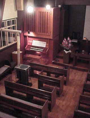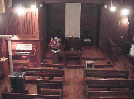 日本キリスト教団藤崎教会。礼拝堂を、2階から撮影。