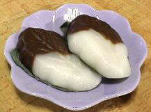 これ知ってる?? 多分北海道の食べ物で、「べこ餅」。小さい時に母が、「子どもの日」によく作ってくれました。懐かしいなぁ・・。 黒いのは、黒砂糖の色だよ。 |