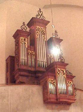 この楽器はリュックポジティフが付いている美しい楽器です。近くに行って気付いたのですが、リュックポジティフ(演奏台の後ろ側にオルガンの小さなパイプやケースがあるの)自体に、ストップ(音色)が付いているのね! なるほど・・。その様子はみどりちゃんが撮ってくれたマキ&オルガンの写真で見ることが出来ます。(ちょっと大きいです・・ごめんなさい。f(^_^) ) ガルニエオルガンは盛岡のホール、マリオスにもあります。 |