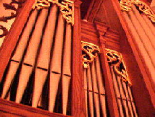 2F席には、フランスのガルニエオルガンが・・♪ 美しいですねー。(/^o^)/♪ ちょうどこの日は、奉献記念礼拝とコンサートが行われたそうです。残念ながら私は学生YMCAの会議のため、聴けませんでした・・しくしく。…(T−T) |